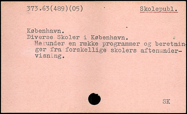 Diverse Skoler i København. . Herunder en række programmer og beretnin ger fra forskellige skolers aftenundervisning.