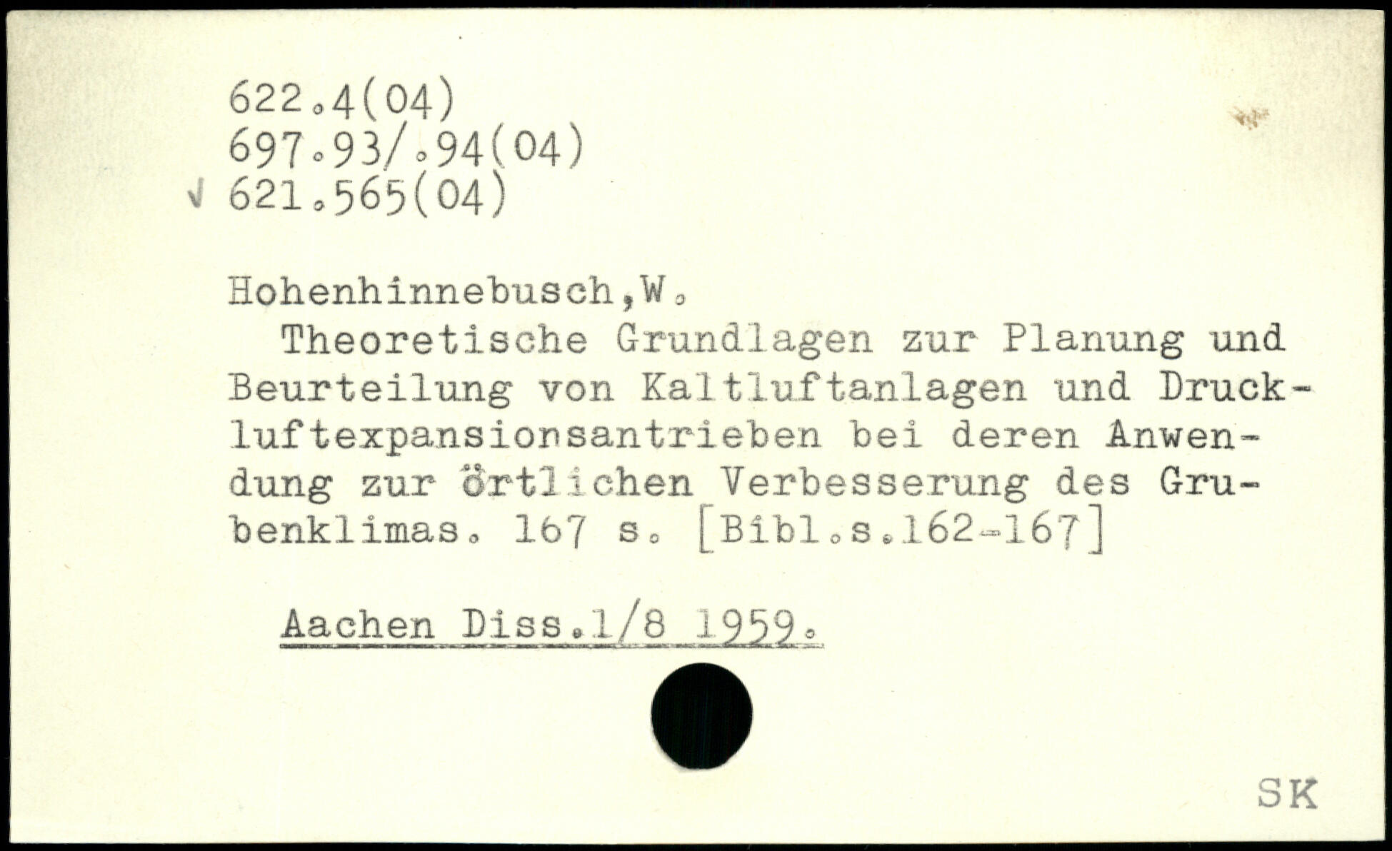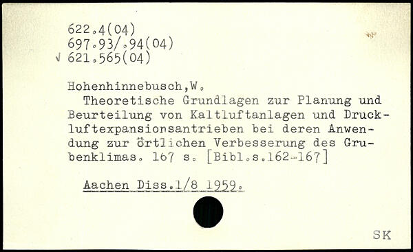 Theoretische Grundlagen zur Planung und Beurteilung von Kaltluftanlagen und Druck-luftexpansionsantrieben bei deren Anwendung zur örtlichen Verbesserung des Grubenklimas 0
