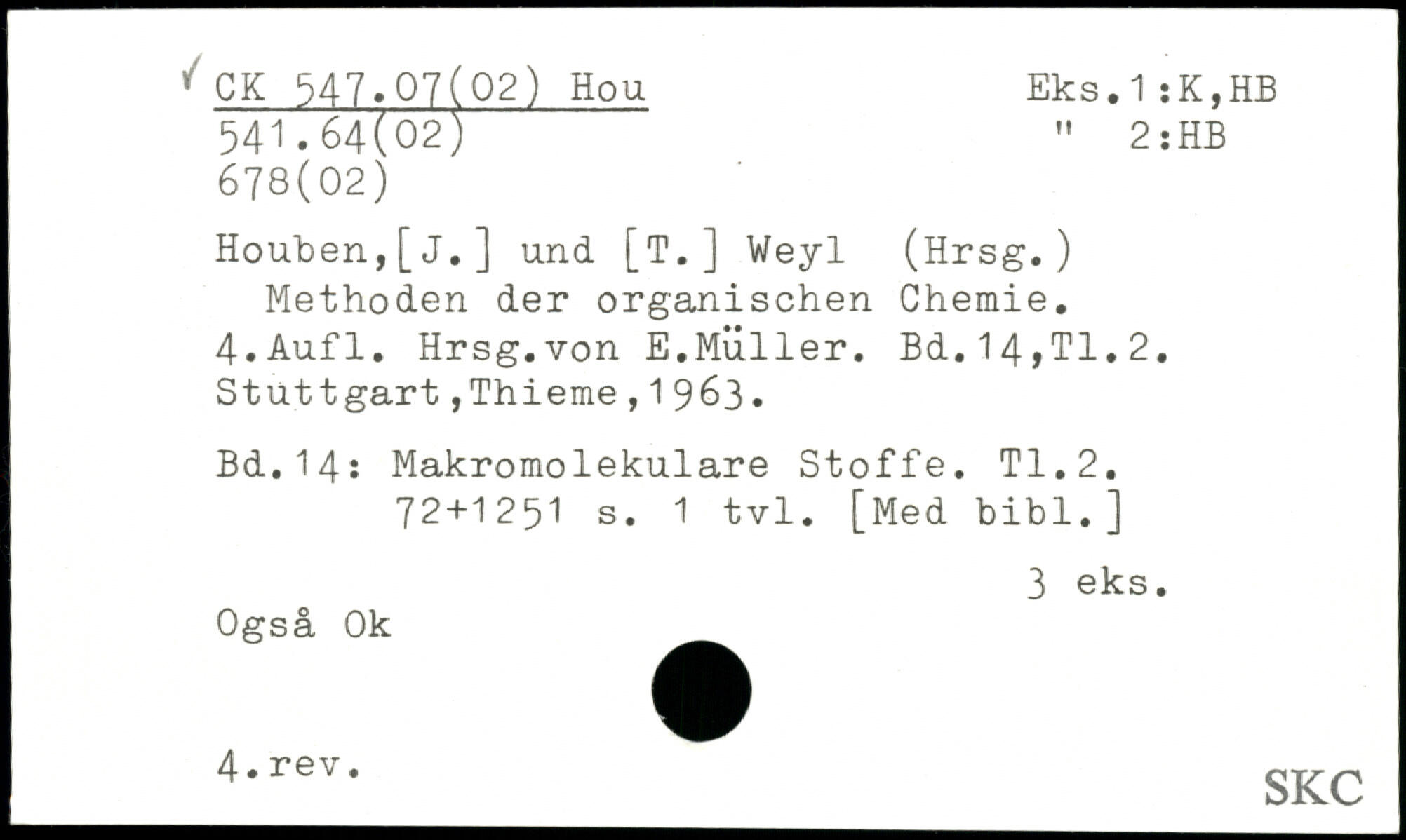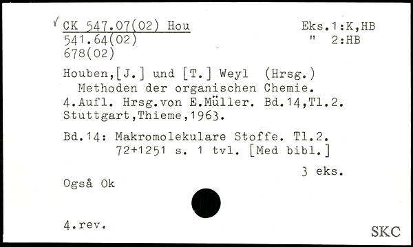 Houben,[j.] und [T.] Weyl (Hrsg.) Methoden der organischen Chemie.