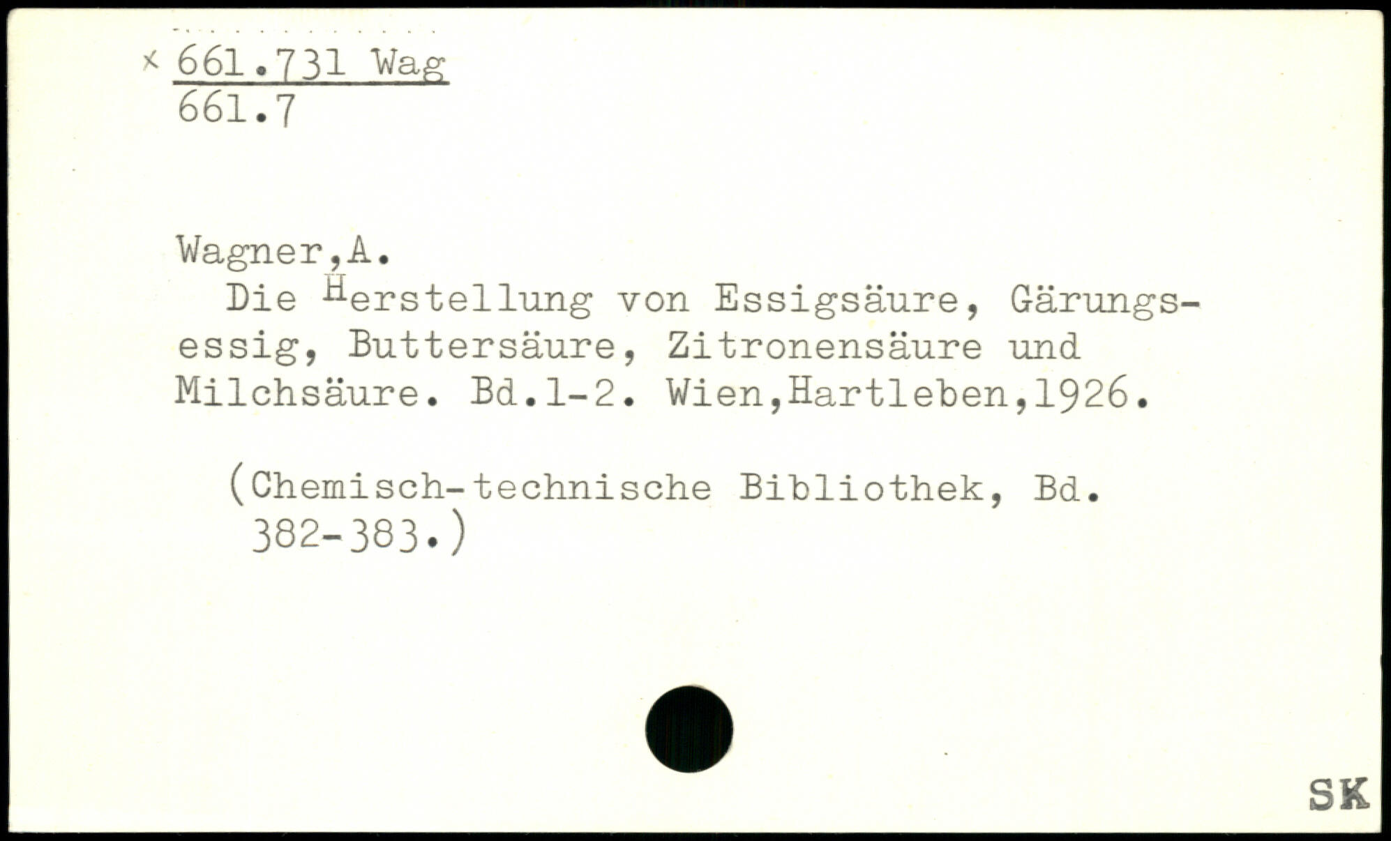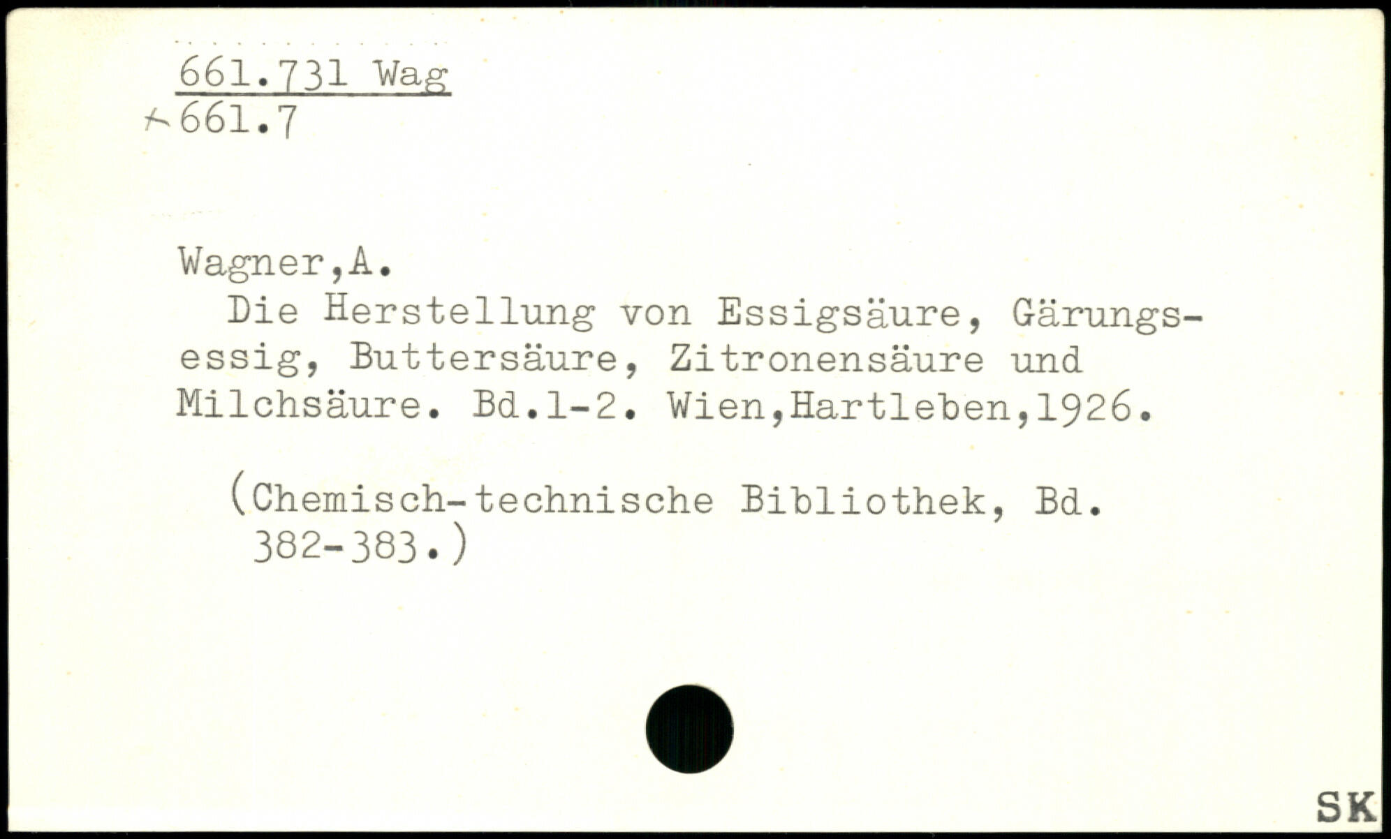 Die Herstellung von Essigsäure, Gärungsessig, Buttersäure, Zitronensäure und Milchsäure.