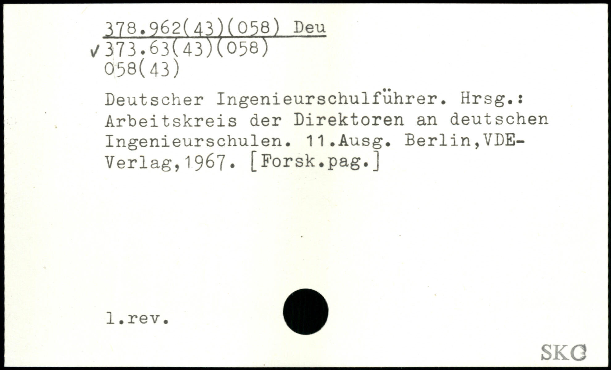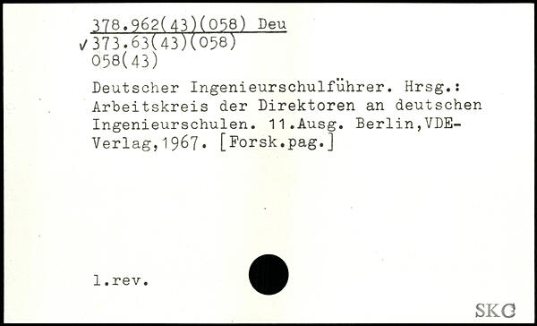 Deutscher Ingenieurschulführer. Hrsg.: Arbeitskreis der Direktoren an deutschen Ingenieurschulen. 11.Ausg. Berlin,VDE-Verlag,19&7.
