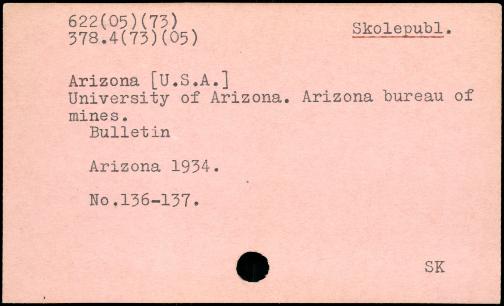 University of Arizona. Arizona bureau of mines. Bulletin Arizona 1934-. No.136-137.