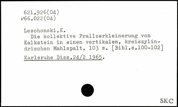 Die kollektive Prallzerkleinerung von Kalkstein in einen vertikalen, kreiszylindrischen Mahlspalt
