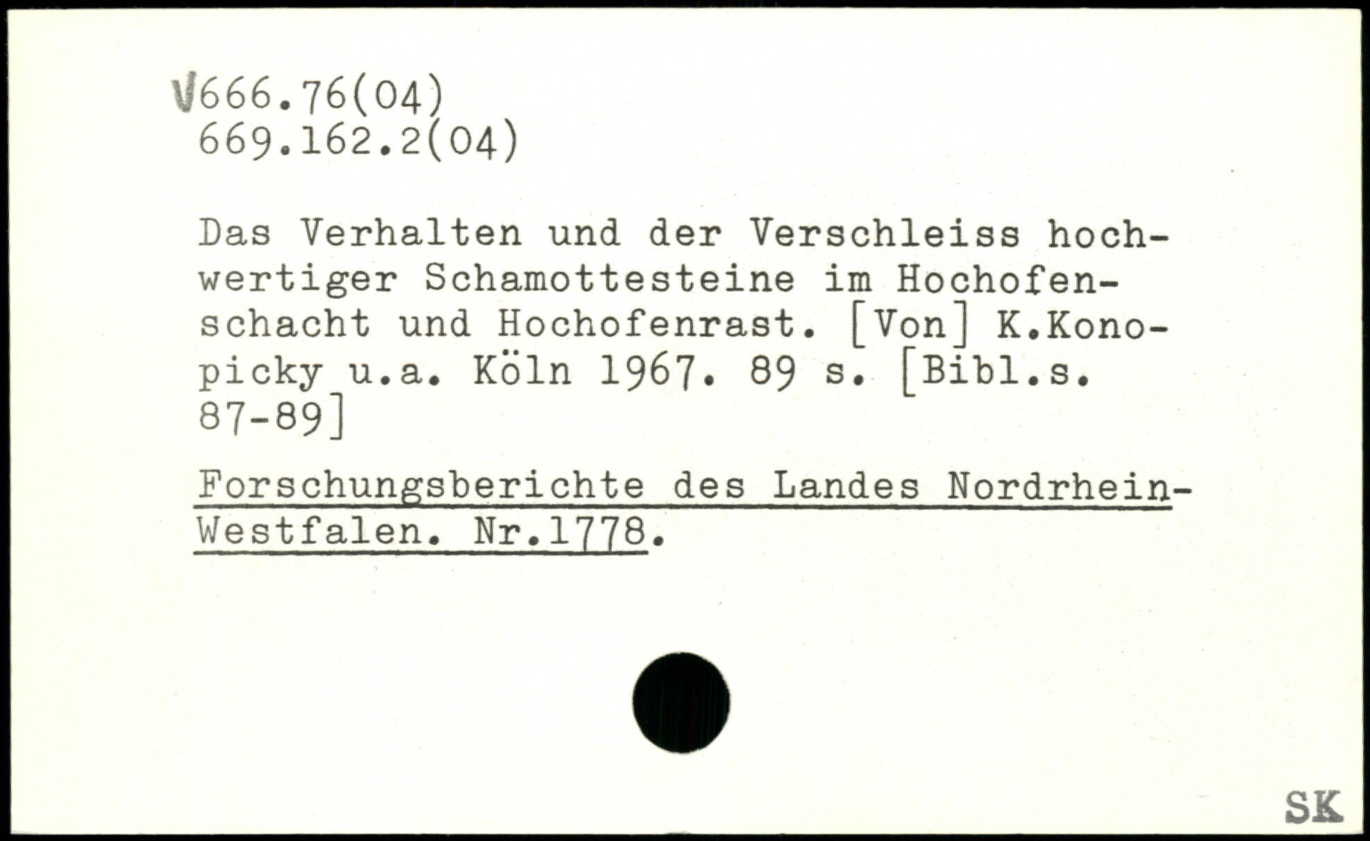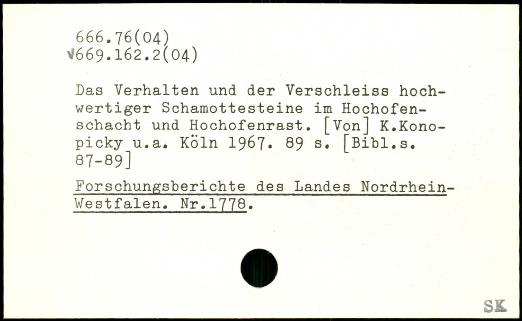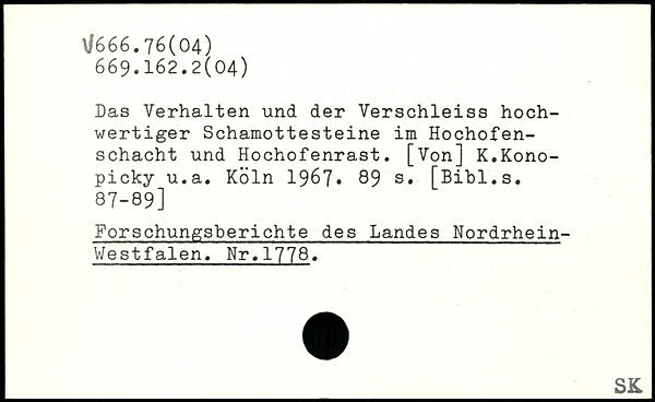Das Verhalten und der Verschleiss hochwertiger Schamottesteine im Hochofenschacht und Hochofenrast. [Von] K.Kono-picky u.a.