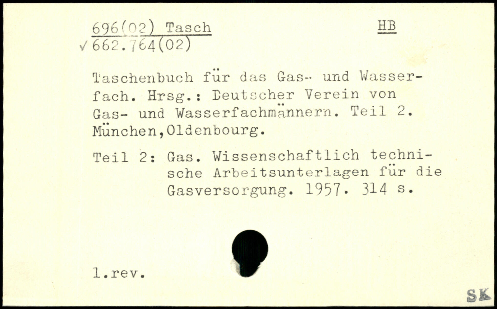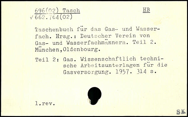 Taschenbuch fur das Gas- und Wasserfach. Hrsg.: Deutscher Verein von Gas- und Wasserfachmännern. Teil 2. München,Oldenbourg. Teil 2: Gas. Wissenschaftlich technische Arbeitsunterlagen fur die Gasversorgung. 1957.