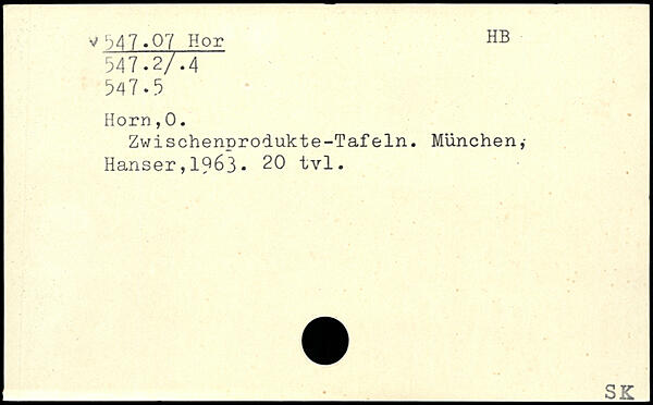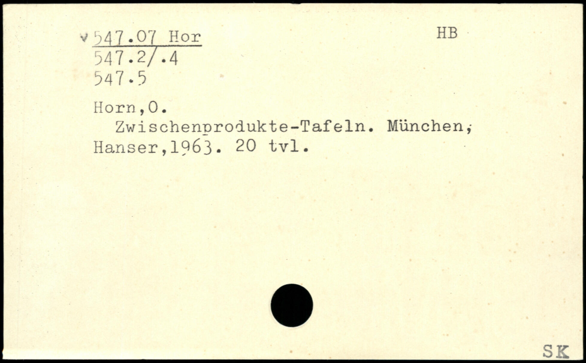 Zwischenprodukte-Tafeln. München,- Hanser,1963. 20 tvl.