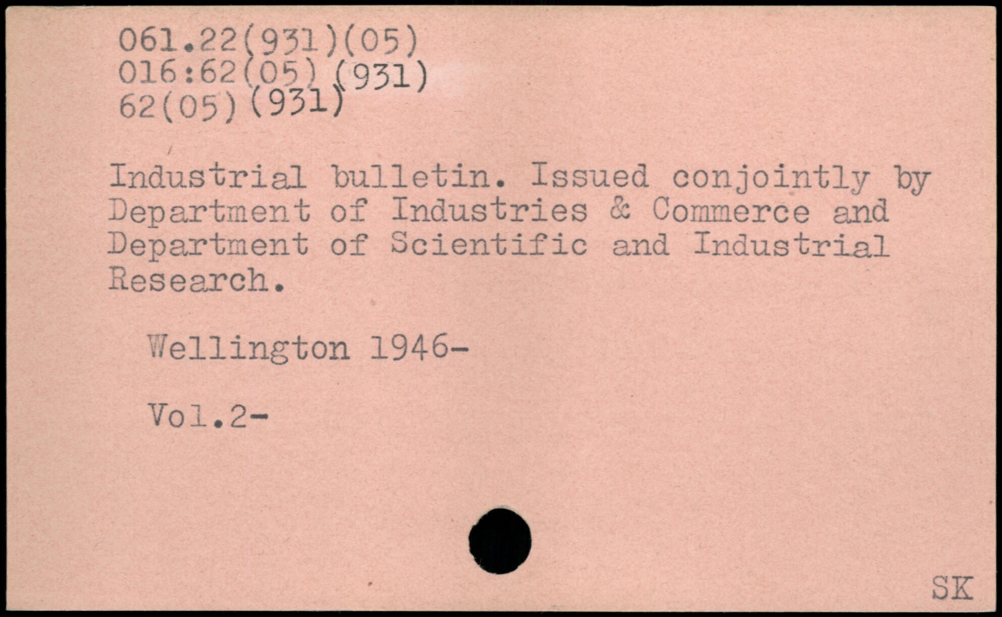 Industrial bulletin. Issued conjointly by Department of Industries & Commerce and Department of Scientific and Industrial Research. Wellington 1946-