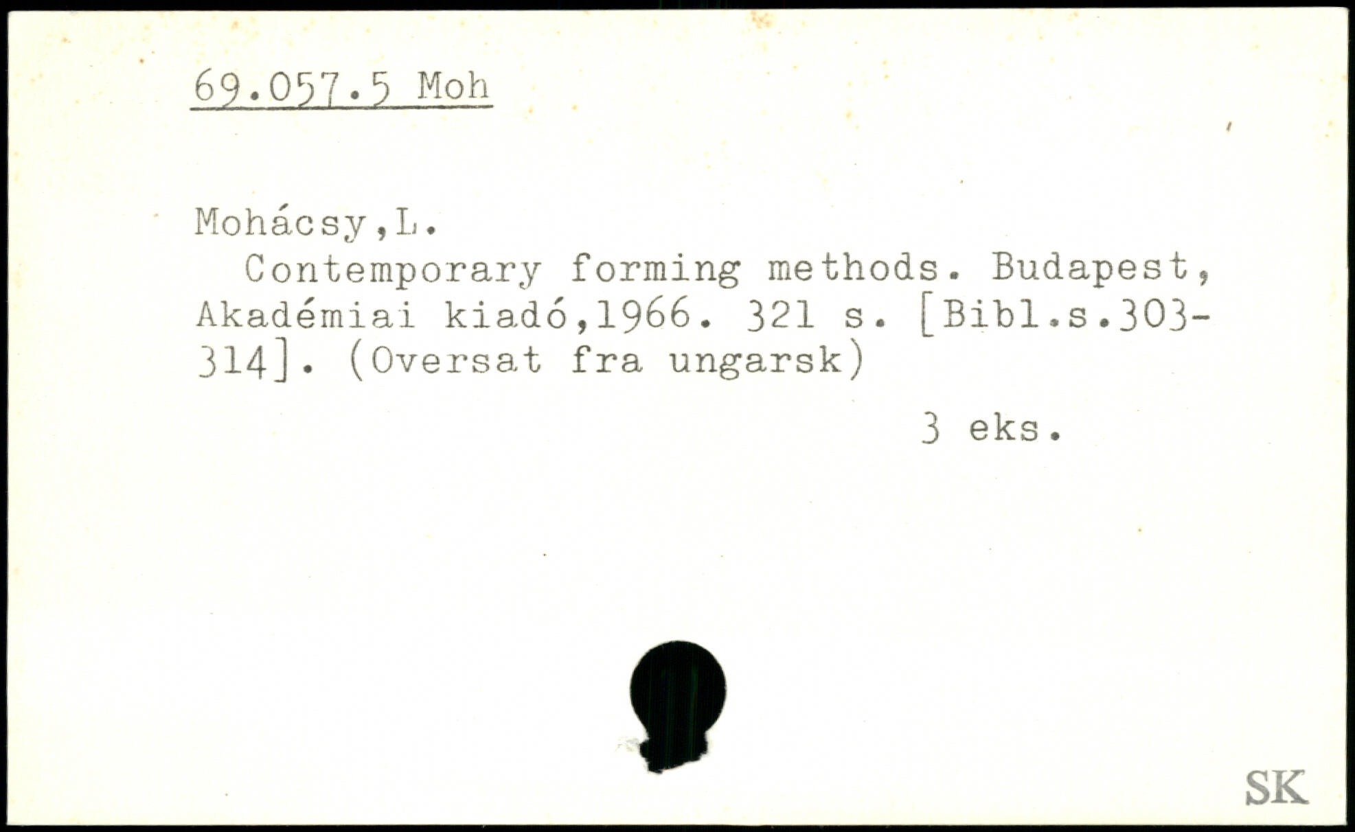 Contemporary forming methods. Budapest, Akadémiai kiado,19é6.