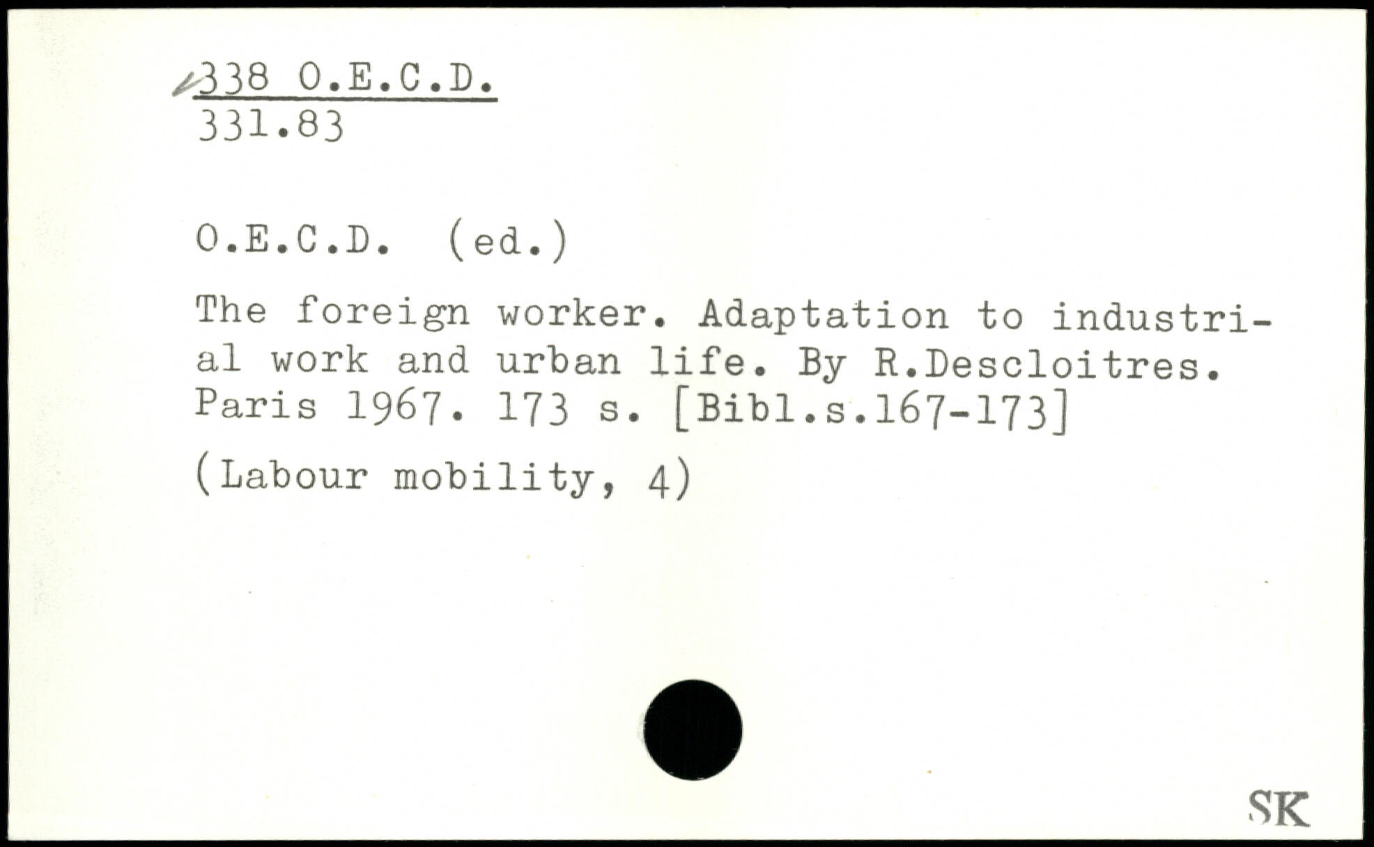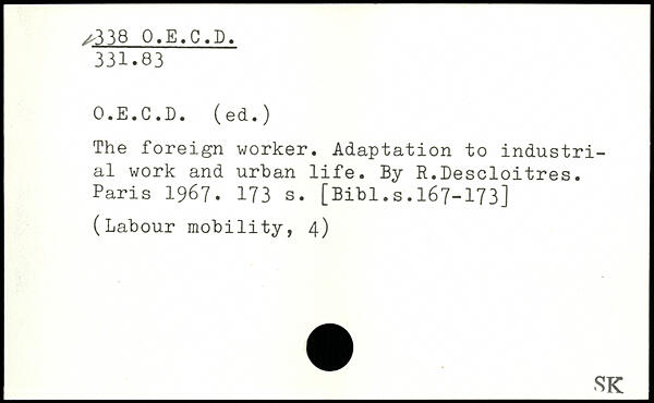 The foreign worker. Adaptation to industrial work and urban life. By R.Descloitres.