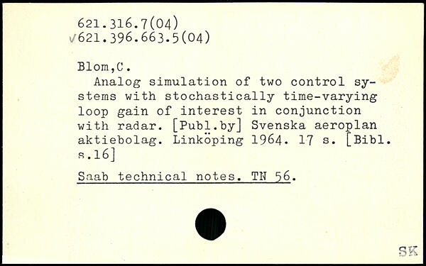 Analog simulation of two control systems with stochastically time-varying loop gain of interest in conjunction with radar.