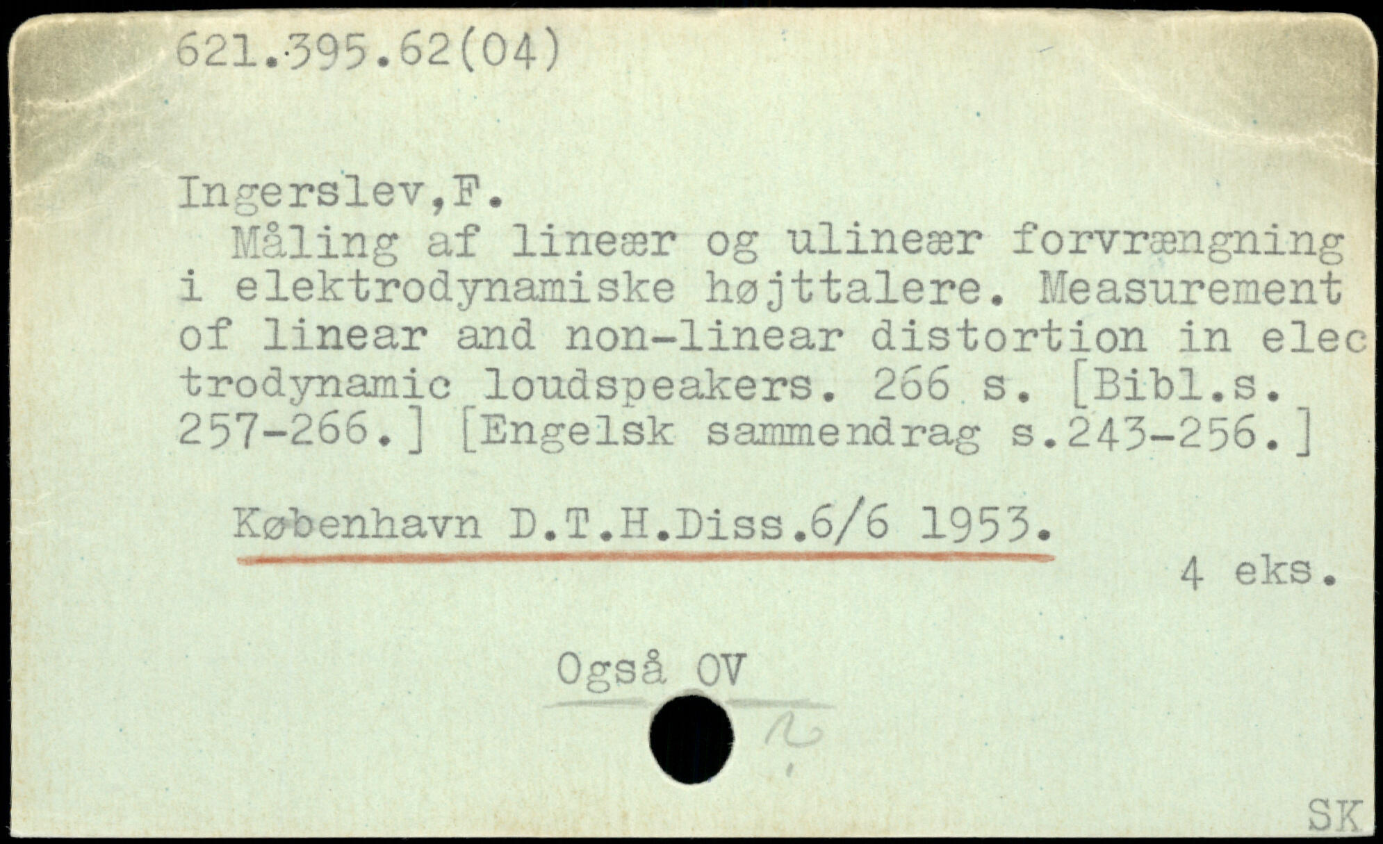Måling af lineær og ulineær forvrængning i elektrodynamiske højttalere. Measurement of linear and non-linear distortion in elec trodynamic loudspeakers.