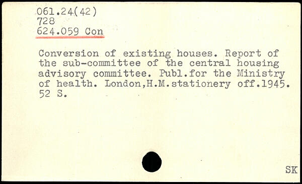Conversion of existing houses. Report of the sub-committee of the central housing advisory committee. Publ.for the Ministry of health. London,H.M.stationery off.1945.