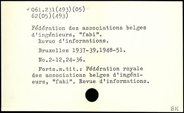 Fédération des associations belges d'ingénieurs, "fabi". Revue d'informations.