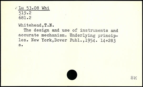 The design and use of instruments and accurate mechanism. Underlying principles.
