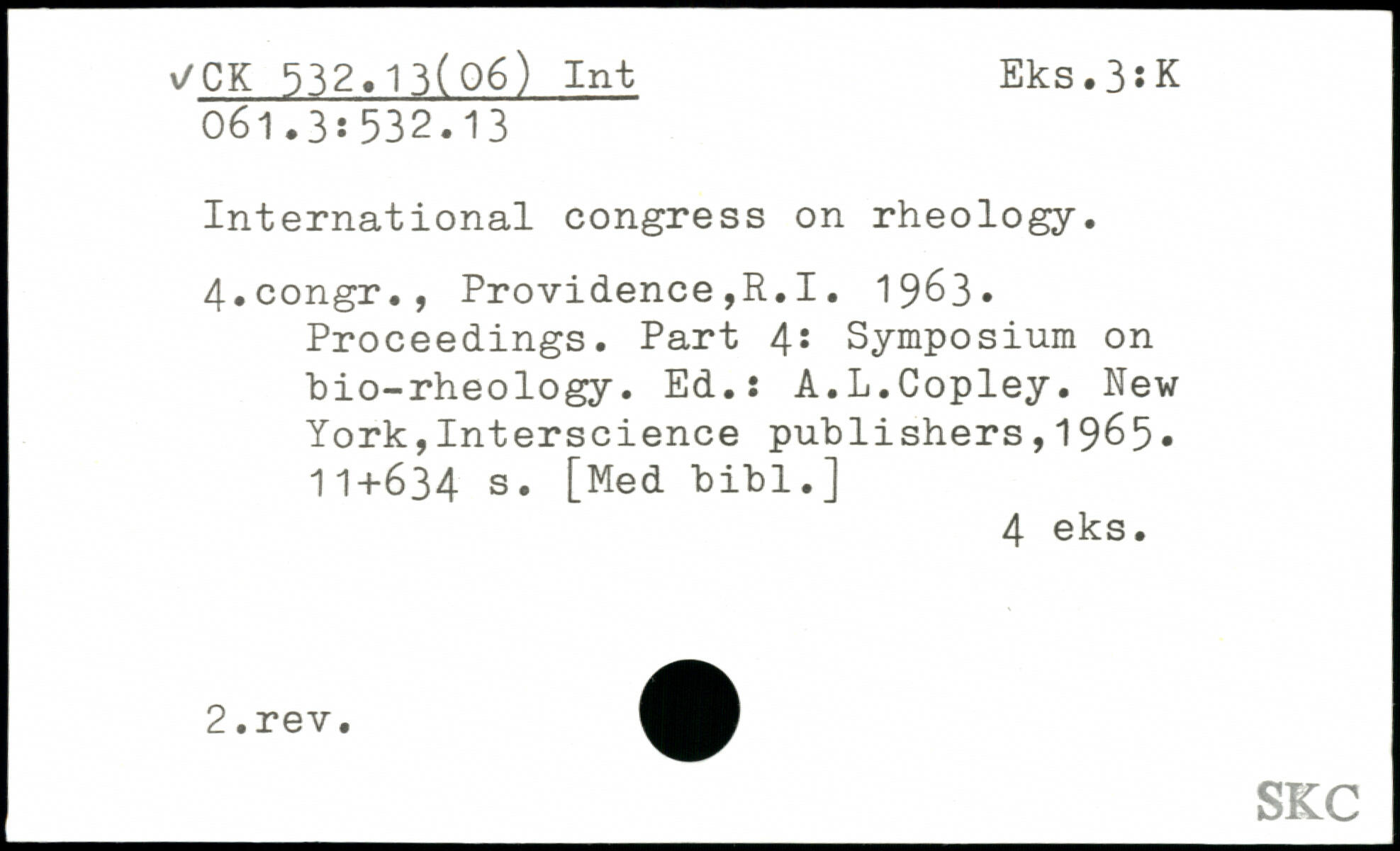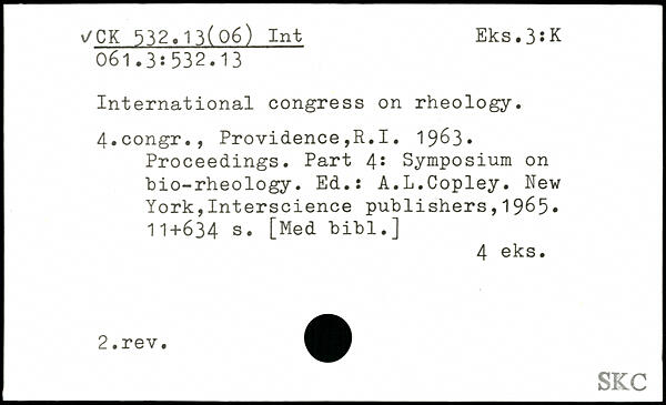 International congress on rheology. 4.congr., Providence,R.I. 1963, Proceedings. Part 4: Symposium on bio-rheology. Ed.: A.L.Copley.