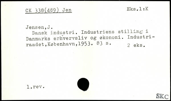 Dansk industri. Industriens st1111ng i Danmarks erhvervsliv og økonomi.