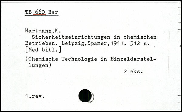 Sicherheitseinrichtungen in chemischen Betrieben. Leipzig,Spamer,1.