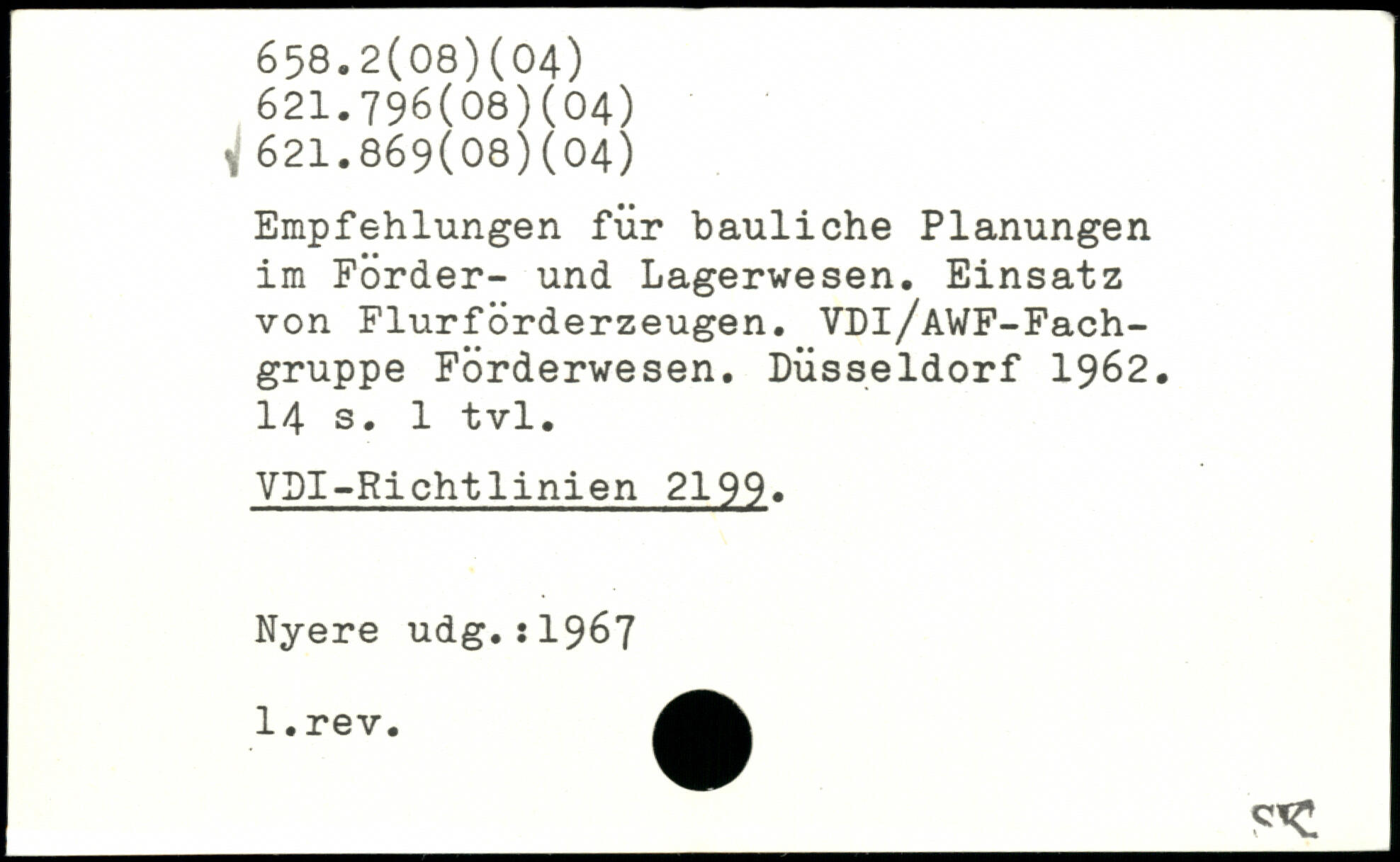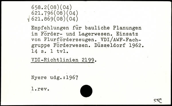 Empfehlungen für bauliche Planungen im Förder- und Lagerwesen. Einsatz von Flurförderzeugen. VDl/AWF-Fach-gruppe Förderwesen. Düsseldorf 1962.