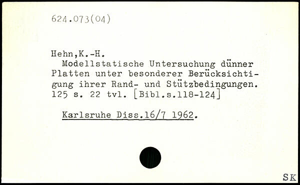 Modellstatische Untersuchung dünner Platten unter besonderer Berücksichtigung ihrer Rand- und Stützbedingungen.