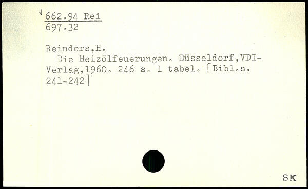 Reinders,He Die Heizölfeuerungen, Düsseldorf,VDI-Verlag,1960o 246 s0 1 tabel® fBibioS, 241-242]