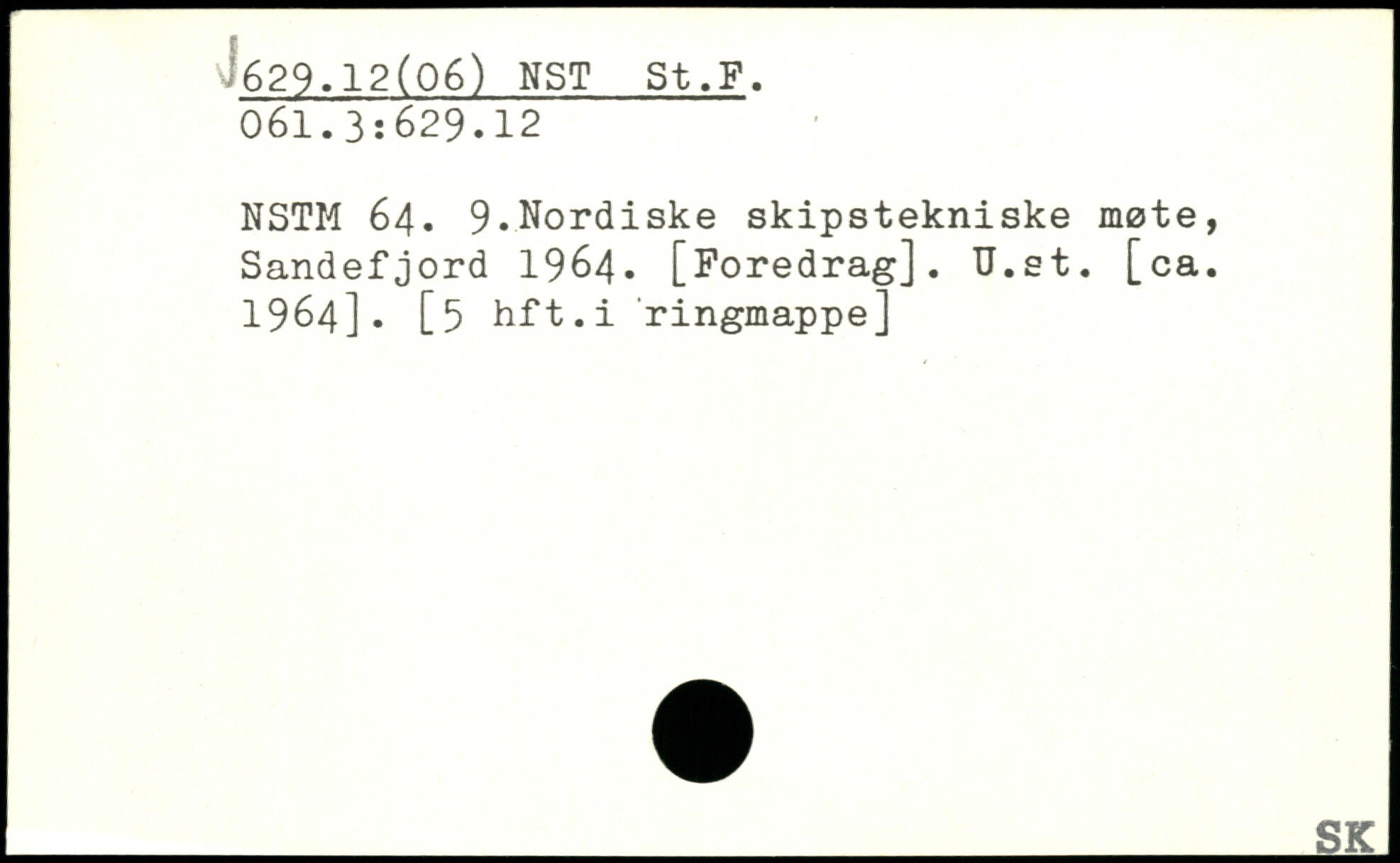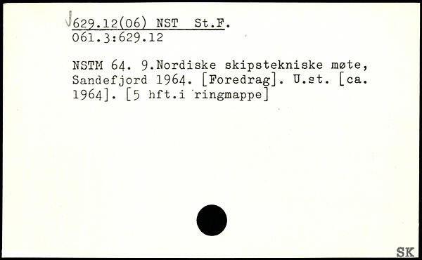NSTM 64. 9.Nordiske skipstekniske møte, Sandefjord 1964. [Foredrag]. U.et. [ca. 1964]. [5 hft.i ringmappe]