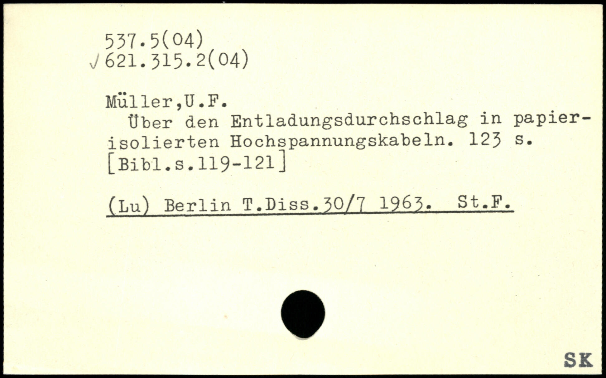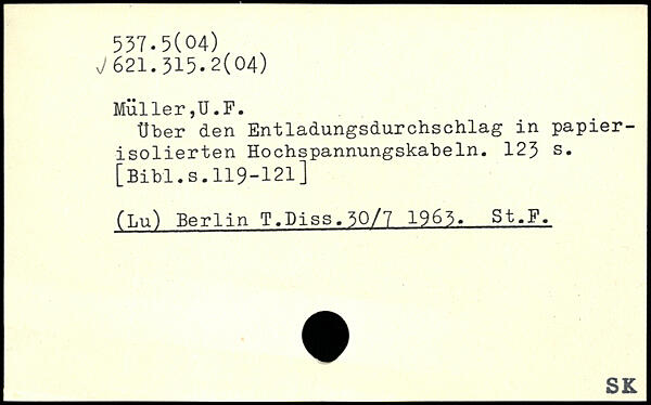 Über den Entladungsdurchschlag in papierisolierten Hochspannungskabeln.