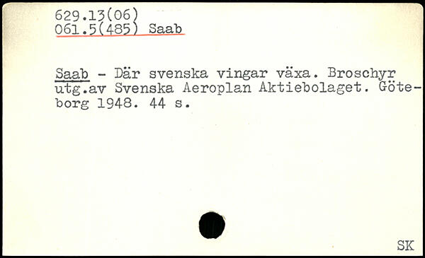 Saab - Där svenska vingar växa. Broschyr utg.av Svenska Aeroplan Aktiebolaget. Göteborg 1948.