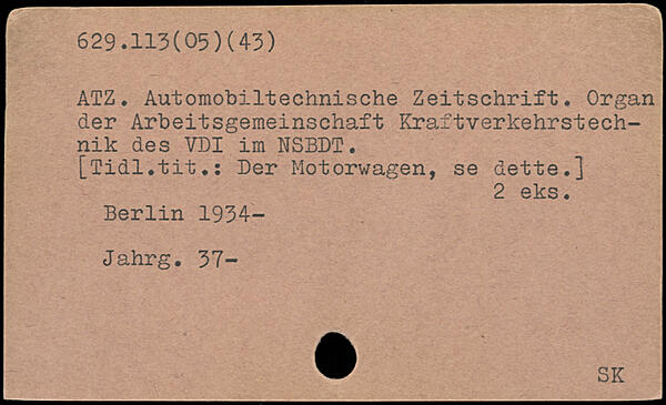 ATZ. Automobiltechnische Zeitschrift. Organ der Arbeitsgemeinschaft Kraftverkehrstechnik des VDI im NSBDT.