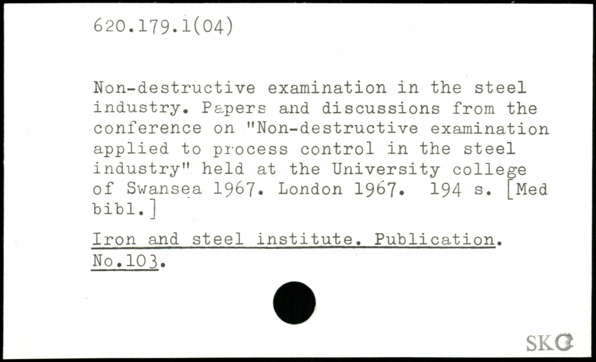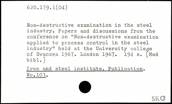 Non-destructive examination in the steel industry. Papers and discussions from the conference on "Non-destructive examination applied to process control in the steel industry" held at the University college of Swansea 1967
