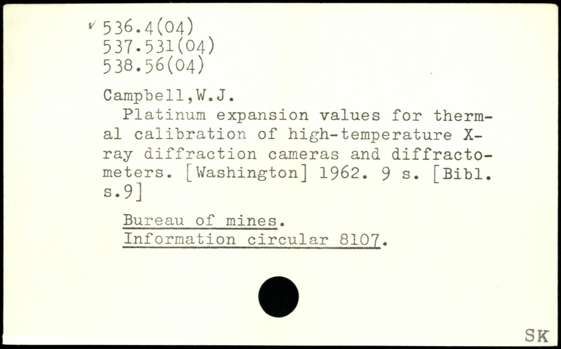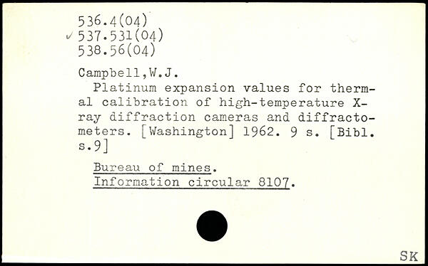 Platinum expansion values for thermal calibration of high-temperature X-ray diffraction cameras and diffractometers.