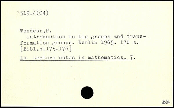 Introduction to Lie groups and transformation groups.