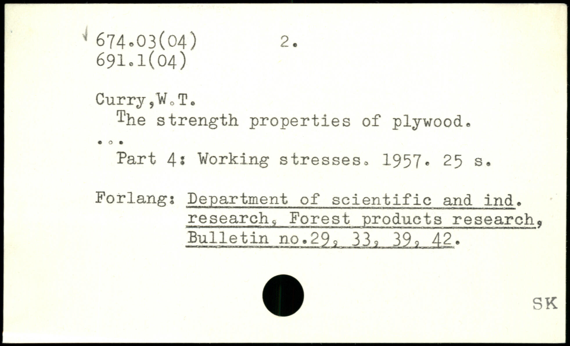 Curry,WD T. The strength properties of plywood. Part 4. Working stresses. 1957.
