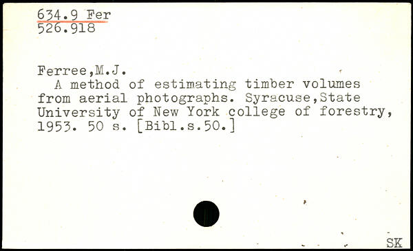 A method of estimating timber volumes from aerial photographs. Syracuse,State University of New York college of forestry, 1953.