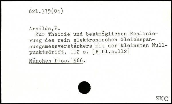 Zur Theorie und bestmöglichen Realisierung des rein elektronischen Gleichspan-nungsmessverstarkers mit der kleinsten Nullpunktsdrift.