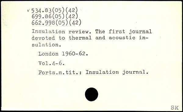 Insulation review. The first journal devoted to thermal and acoustic insulation.