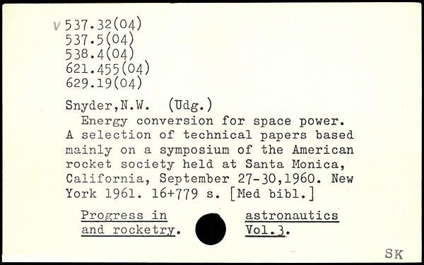 Energy conversion for space power. A selection of technical papers based mainly on a symposium of the American rocket society held at Santa Monica, California, September 27-30,1960.
