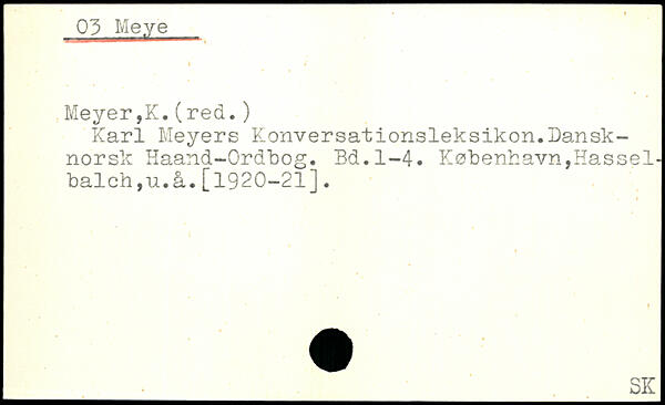 Karl Meyers Konversationsleksikon.Dansk-norsk Haand-Ordbog.