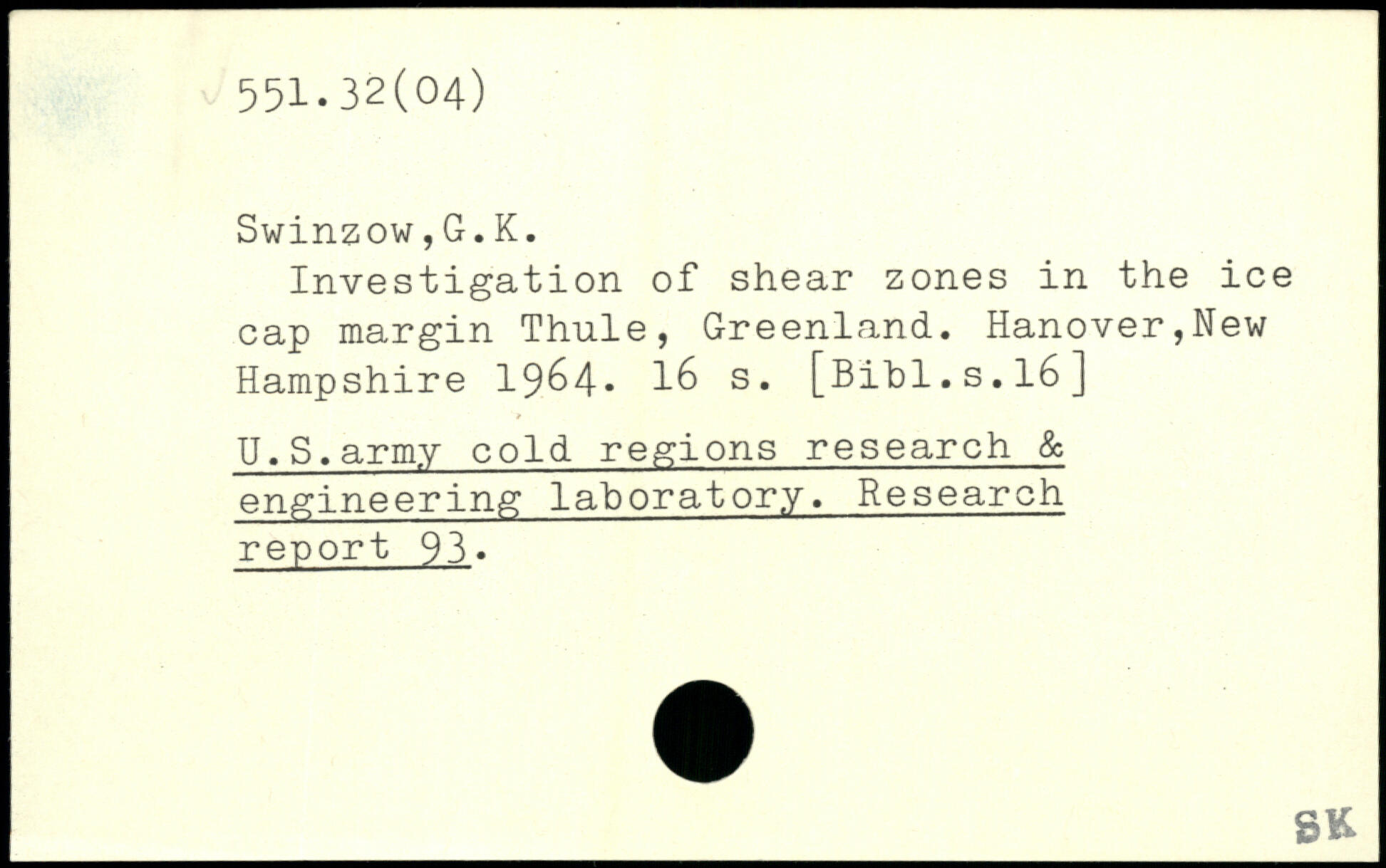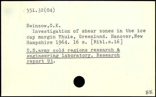 Investigation of shear zones in the ice cap margin Thule, Greenland. Hanover,New Hampshire 19&4.