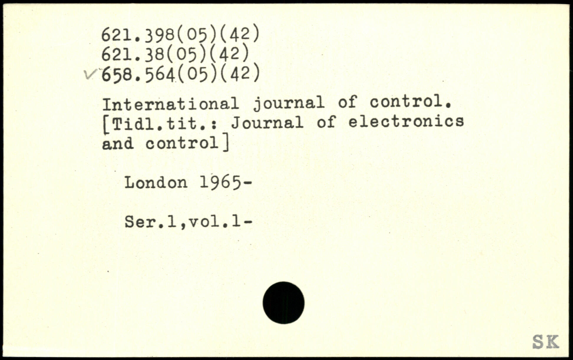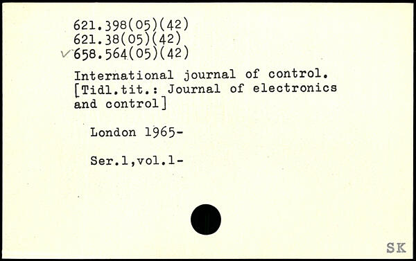 International journal of control. [Tidl.tit.: Journal of electronics and control]