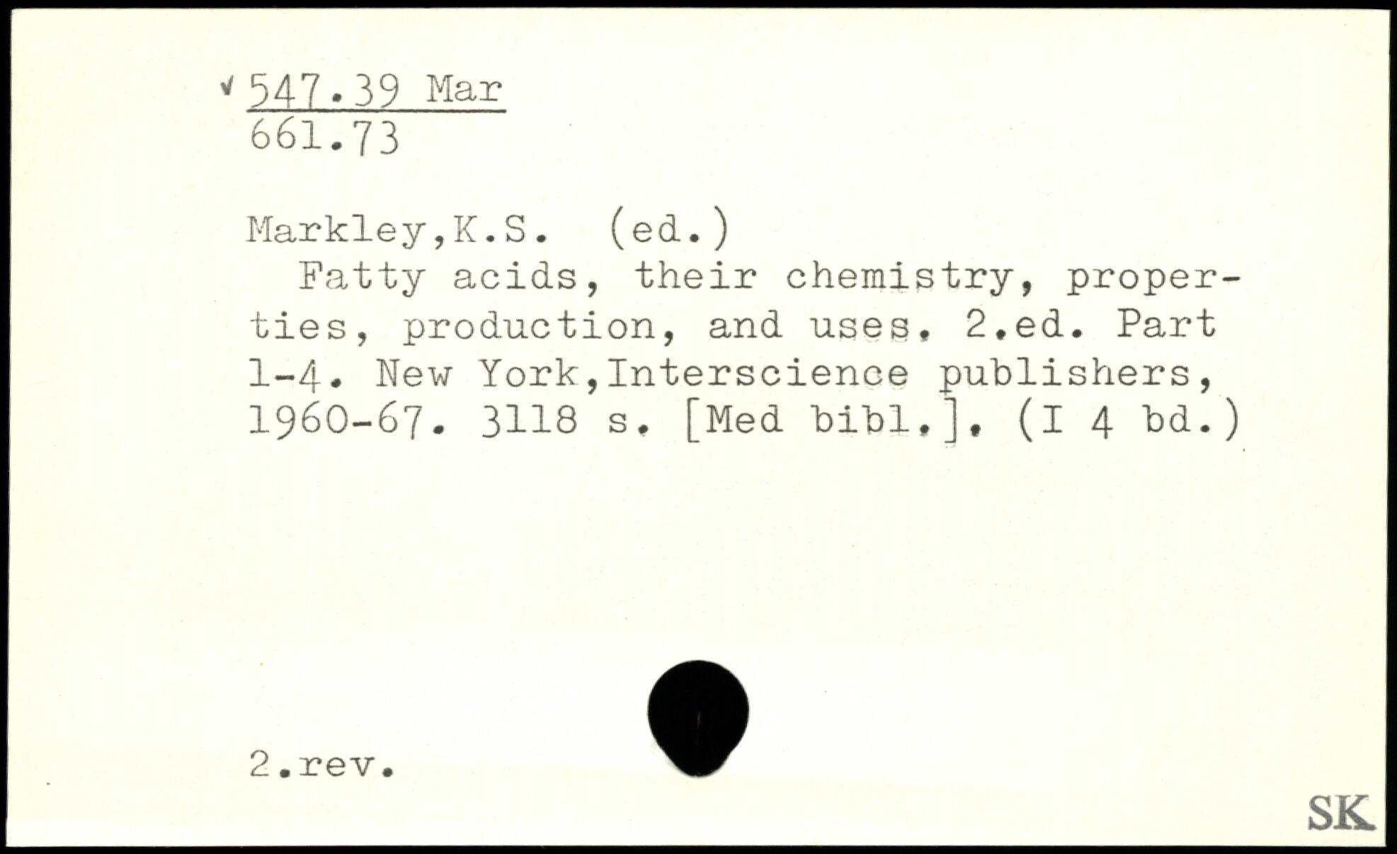 Fatty acids, their chemistry, properties, production, and uses, 2,ed. Part 1-4.