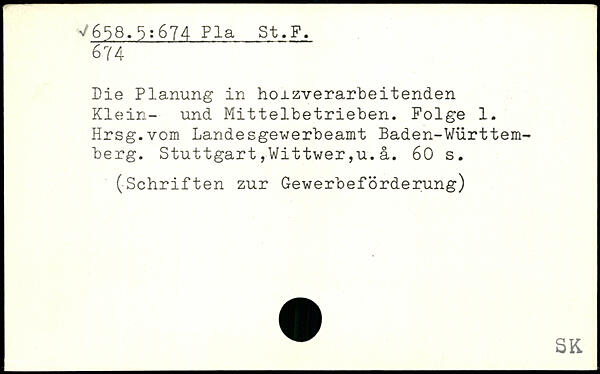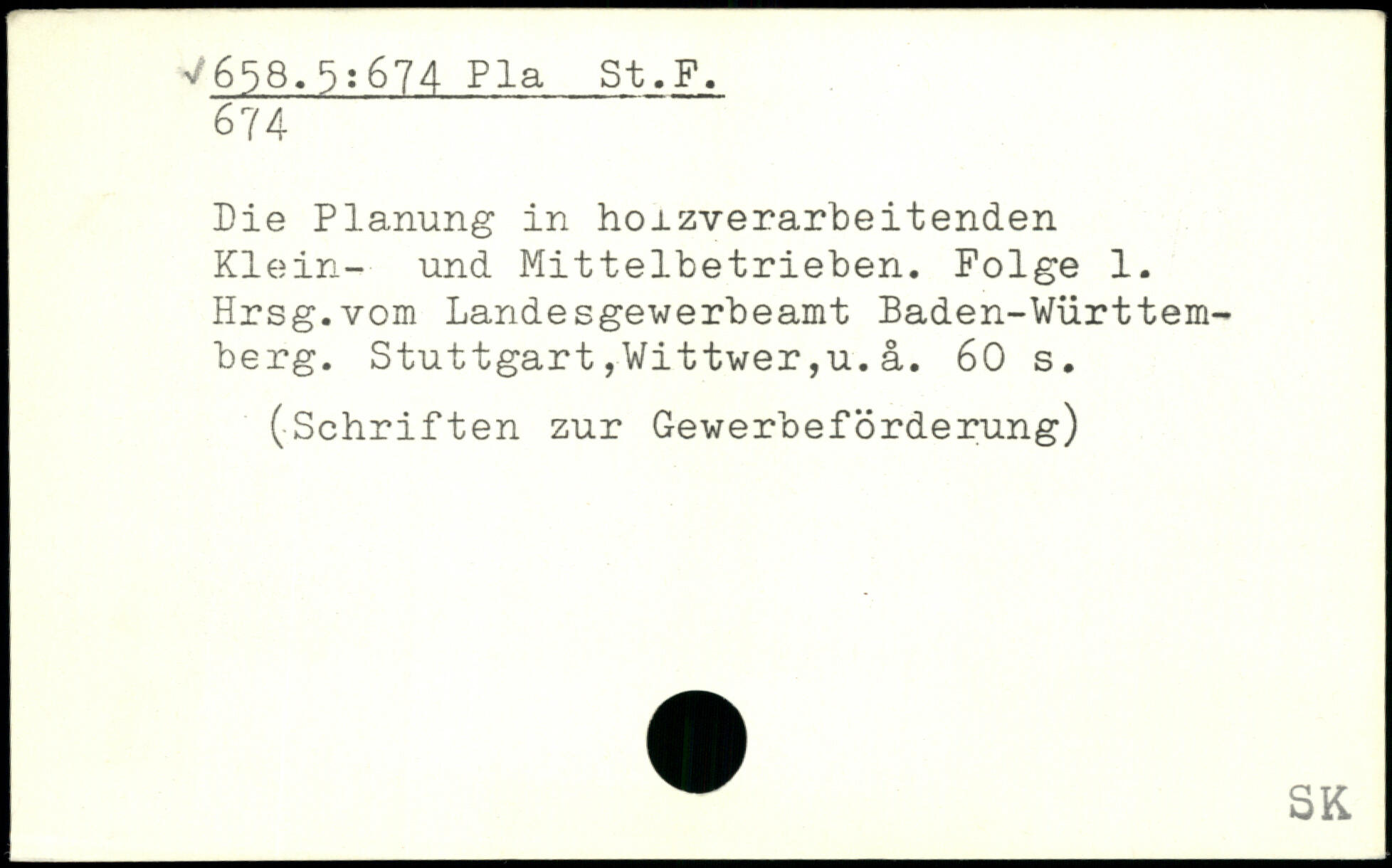 Die Planung in holzverarbeitenden Klein- und Mittelbetrieben. Folge 1. Hrsg.vom Landesgewerbeamt Baden-Württemberg. Stuttgart,Wittwer,u.ä.