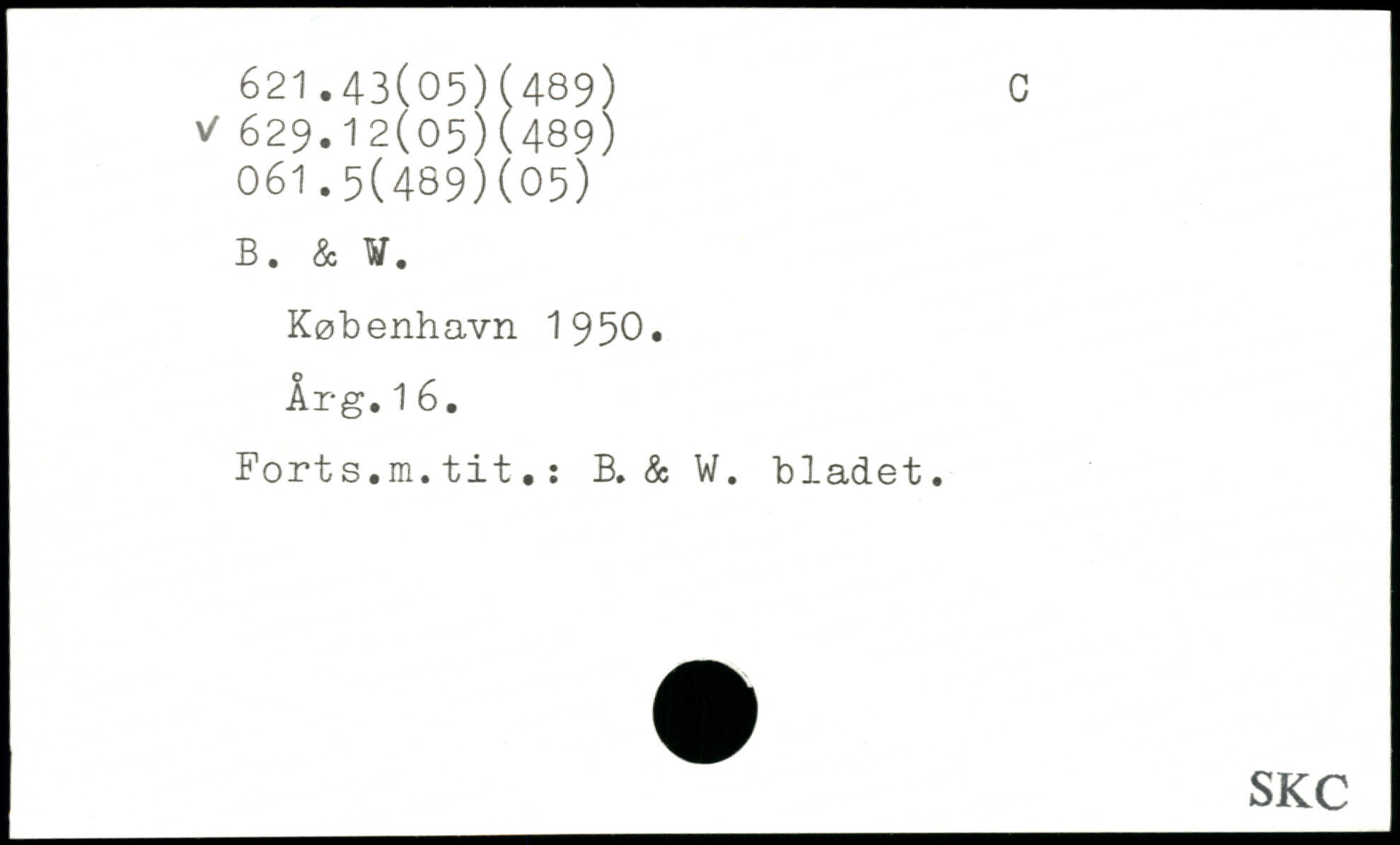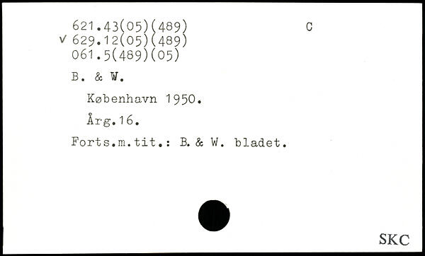 Forts.m.tit.: B. & W. bladet.
