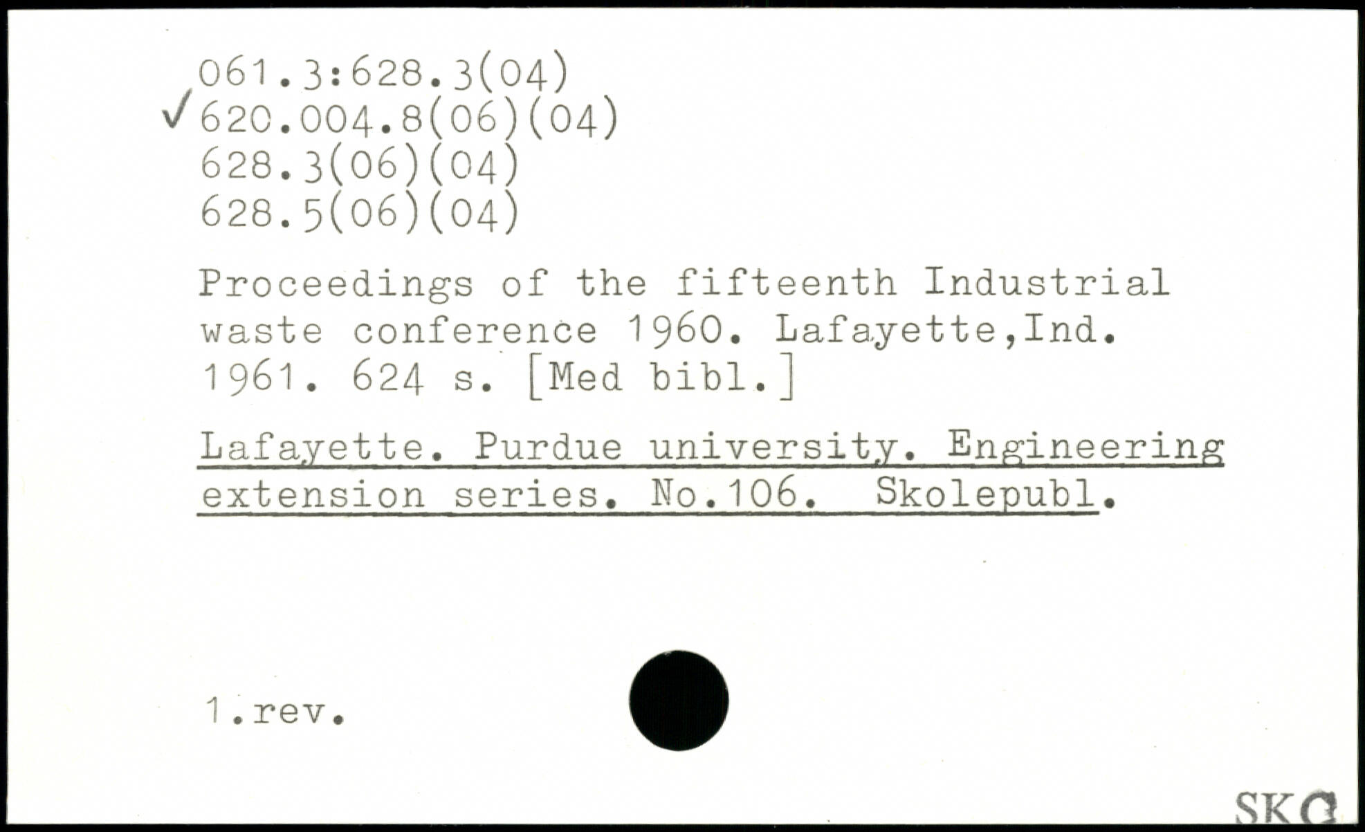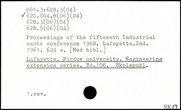 Proceedings of the fifteenth Industrial waste conference 1960. Lafayette,Ind. 1961.