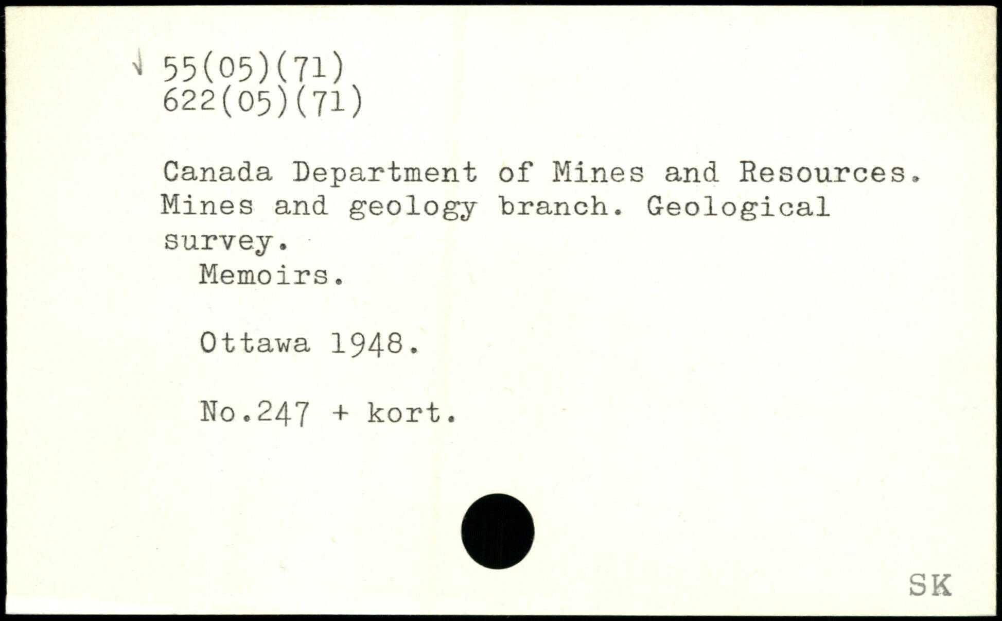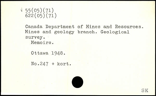 Canada Department of Mines and Resources, Mines and geology branch. Geological survey. Memoirs.
