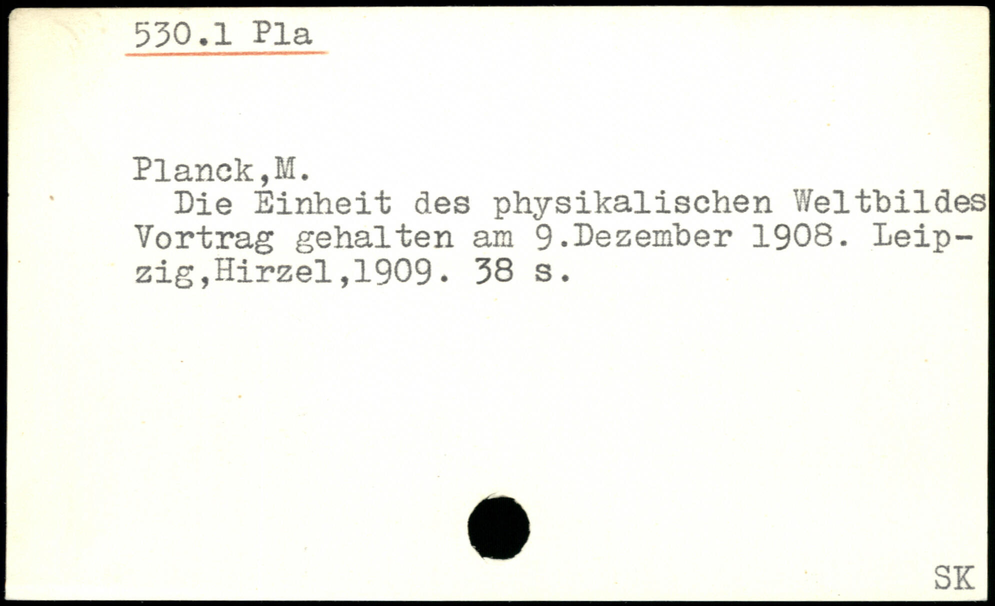 Pie Einheit des physikalischen Weltbildes Vortrag gehalten am 9-Dezember 1908.