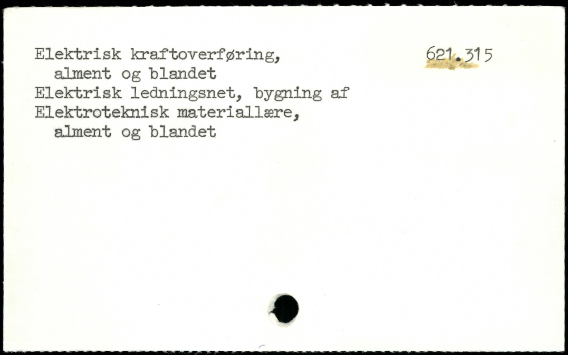 Elektrisk kraftoverføring, 621.. 515 alment og blandet Elektrisk ledningsnet, bygning af Elektroteknisk materialisere, alment og blandet