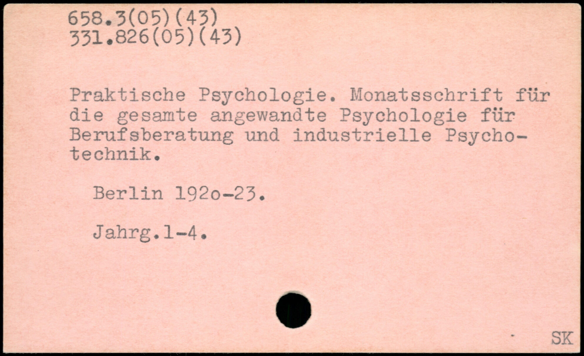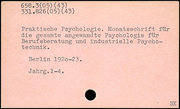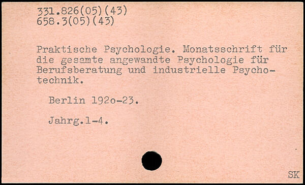 Praktische Psychologie. Monatsschrift für die gesamte angewandte Psychologie für Berufsberatung und industrielle Psycho-technik. Berlin 192o-23. Jahrg.1-4.
