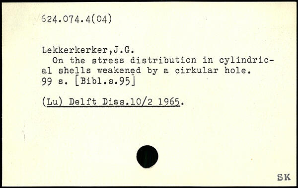 On the stress distribution in cylindrical shells weakened by a cirkular hole.