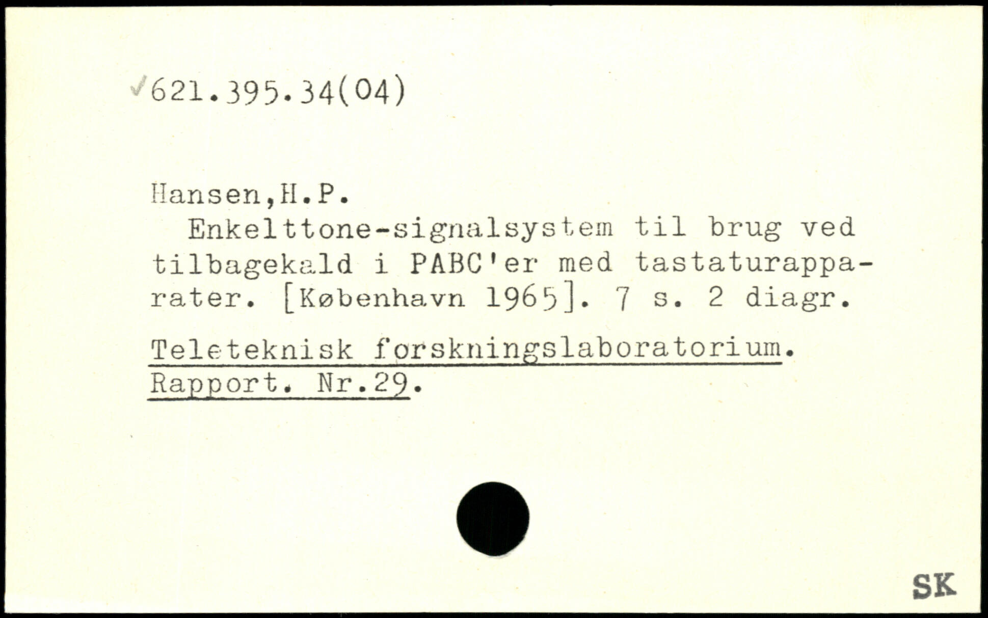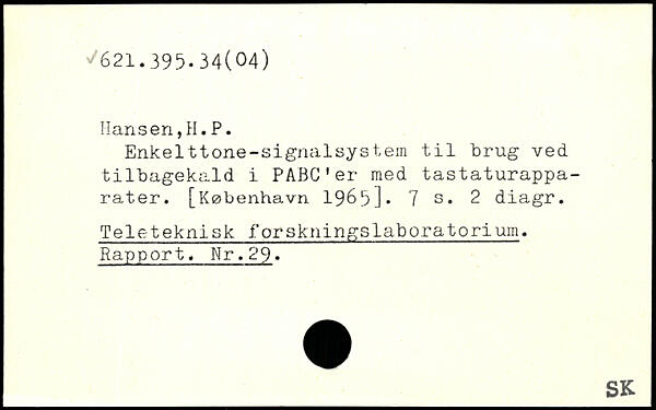 Enkelttone-signalsystem til brug ved tilbagekald i PABC'er med tastaturapparater.