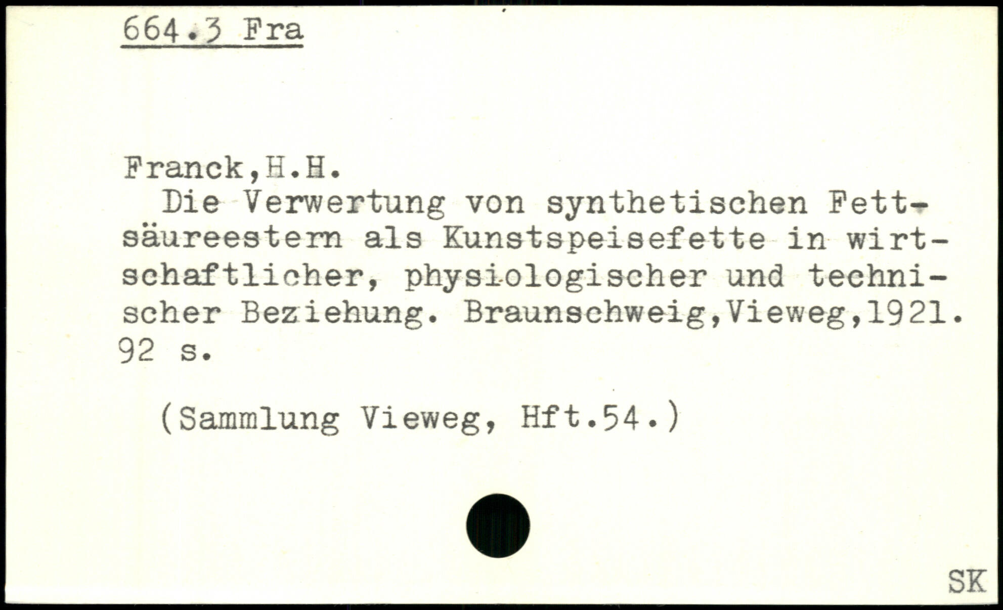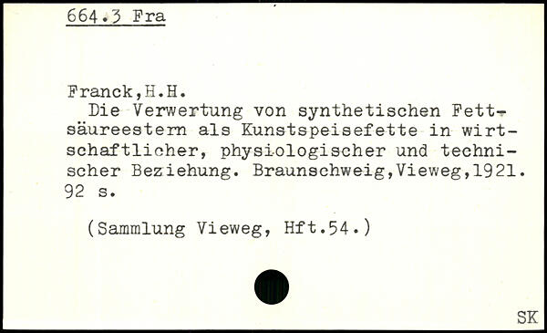 Die Verwertung von synthetischen Fett-säureestem als Kunstspeisefette in wirtschaftlicher, physiologischer und technischer Beziehung.